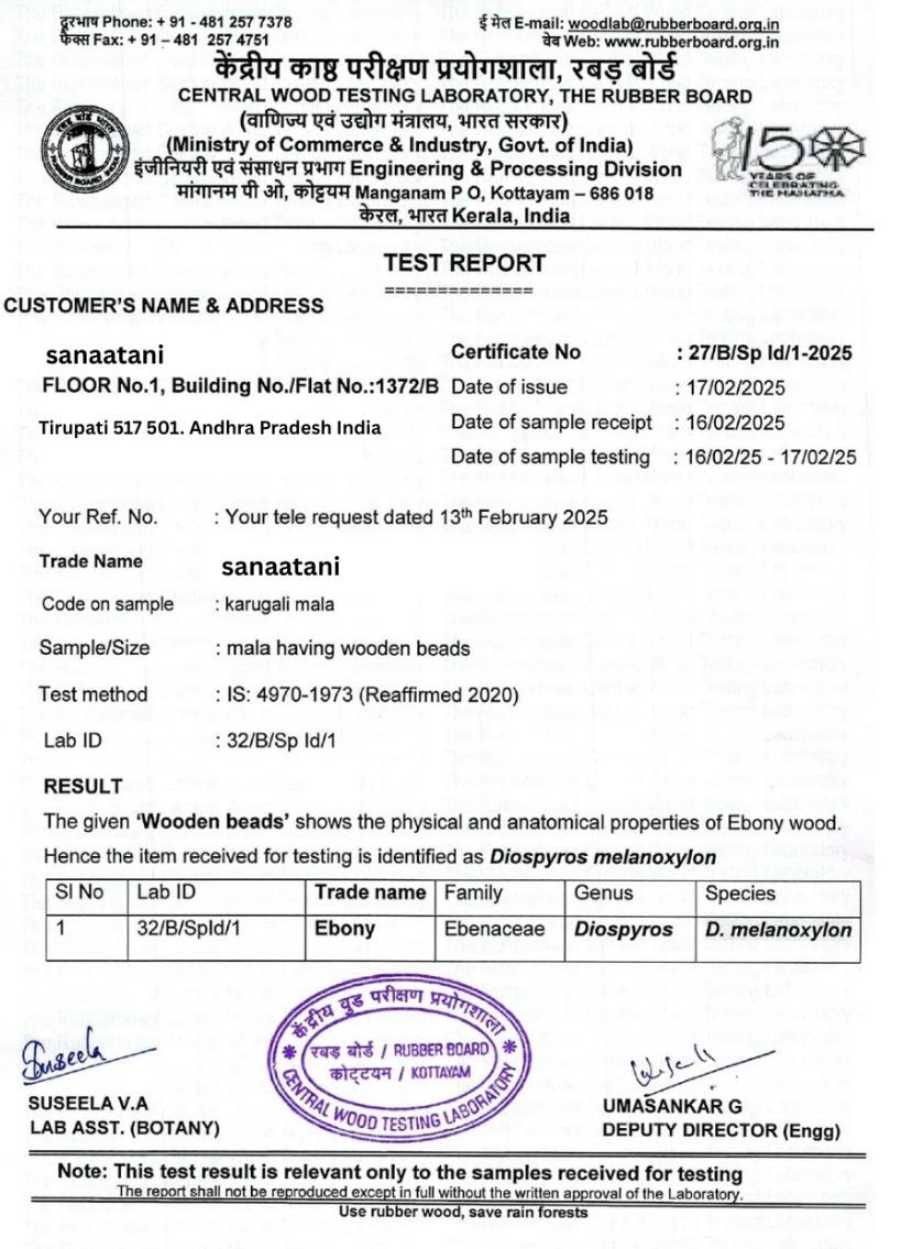 Wearing and using Karungali Mala will bring success, career growth, avoidance of cash shortages, helps peace of mind, removal of long-standing barriers to victory, elimination of , laziness, anxiety and mental fear, Karungali belongs to the Angara Gragha(Mars). All the benefits given by the Angaraha can be obtained by wearing this original Karungali Malai.